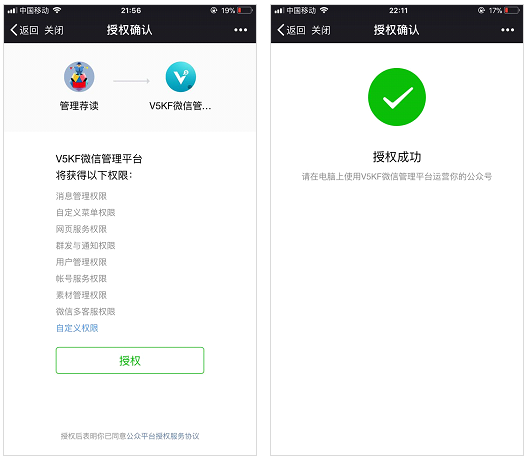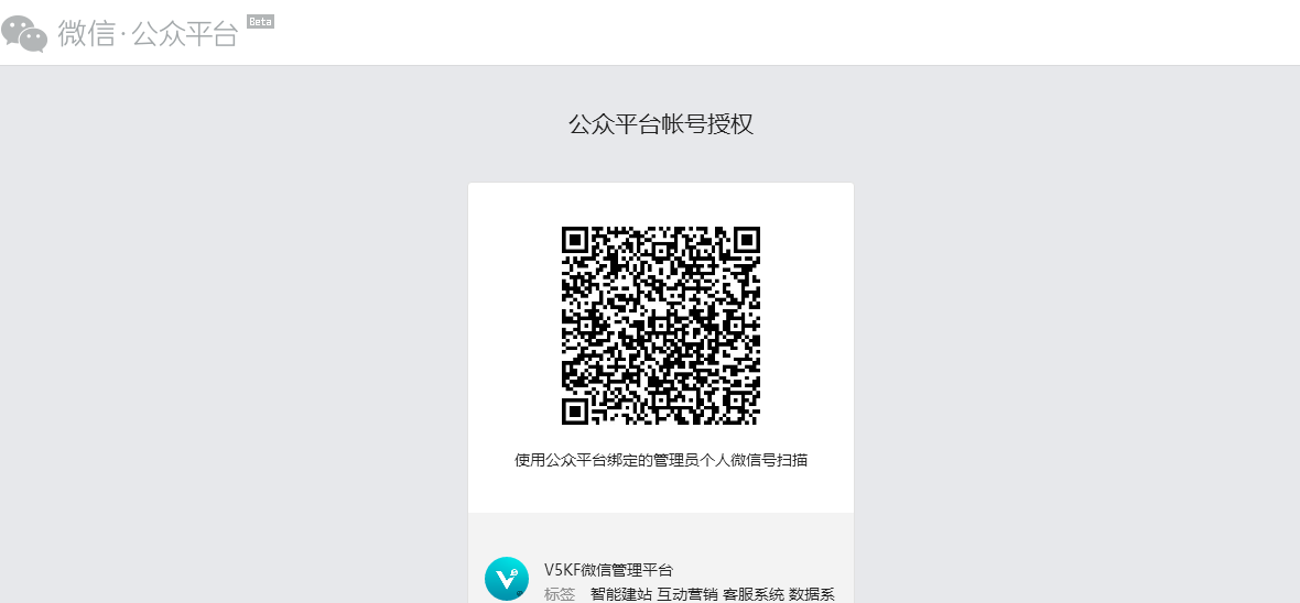 3) 用公众号 管理员/运营权限的手机微信扫一扫二维码并在手机走完授权流程;