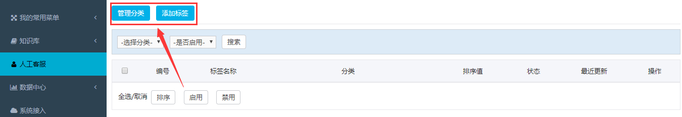 这样客服在写小结时,可根据分类找到标签,否则的话,就只能通过搜索找到。